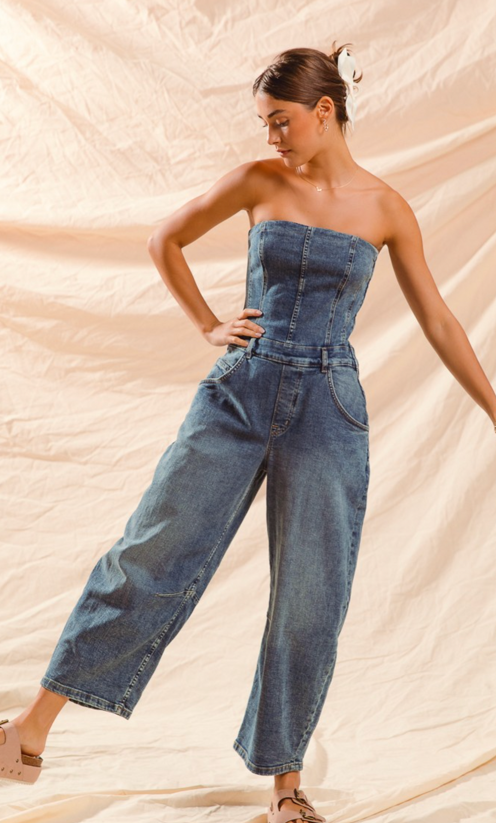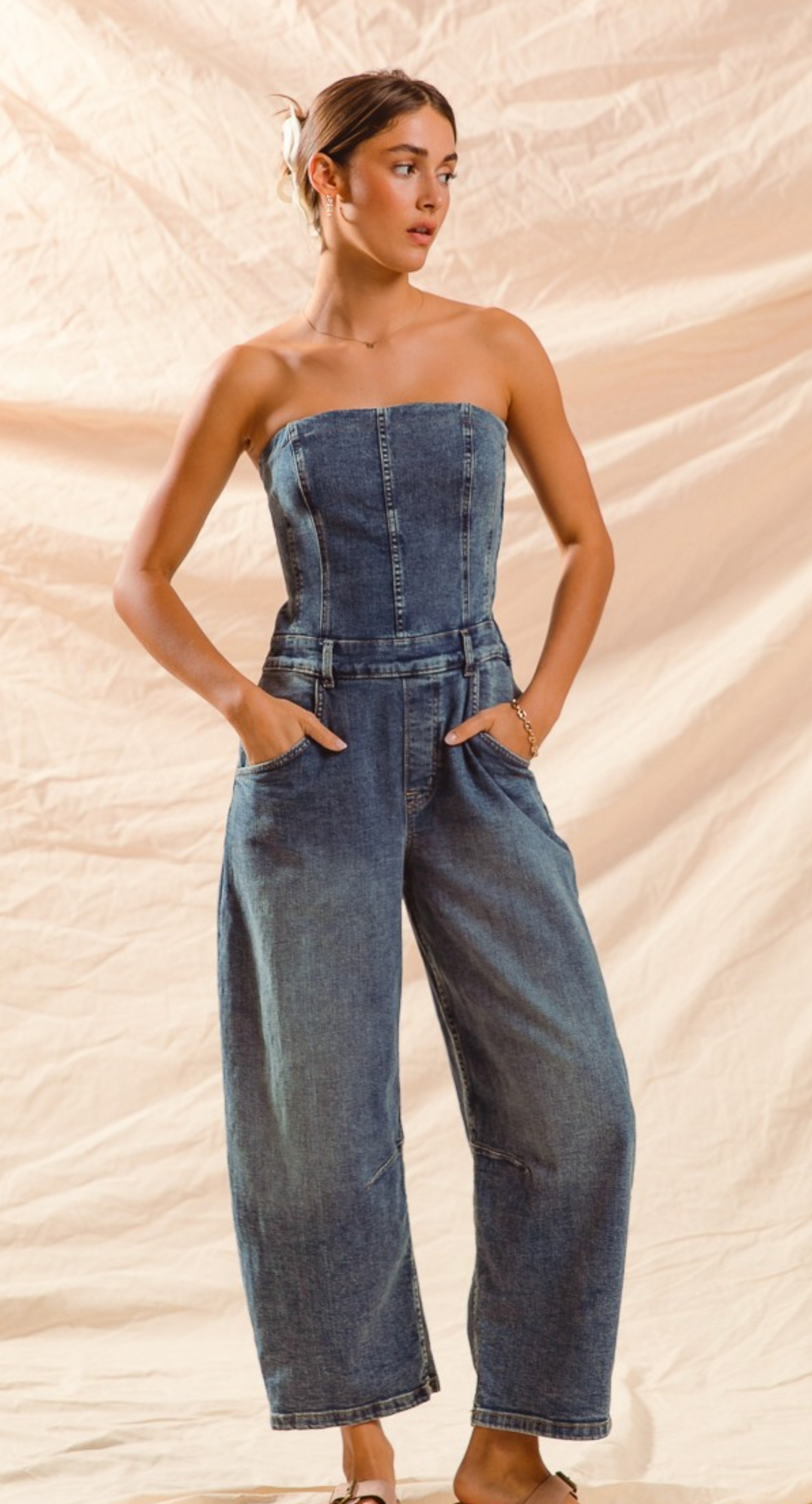 Mono vaquero sin tirantes tipo barril